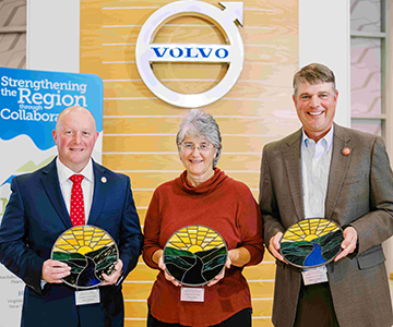 On October 19, 2023, the New River Valley Regional Commission board of directors, comprised of elected officials and citizen appointees across the region, hosted a dinner event at the Volvo Customer Center in Dublin, VA to honor their annual award recipients. Approximately 100 local government elected officials, state and federal representatives, and local government planning commission chairs were in attendance.