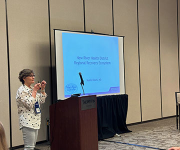 The NRV Recovery Ecosystem was highlighted at the Virginia Department of Health (VDH) Community Health Services (CHS) Leadership Biannual Meeting in Richmond Virginia. Dr. Noelle Bissell, Director of the New River Health District and Holly Lesko with the Regional Commission provided an overview of the program with other Health Directors and senior VDH staff. The level of collaboration and trust built across the New River Valley over the years was shared as the foundation of this program which is unique in the scope of the work and breadth of partnerships engaged in the opioid abatement effort in the region. Dr. Bissell noted, "The Regional Commission provided the structure and glue to our regional response to COVID and continues to do so for the NRV Recovery Ecosystem." and Dr. Karen Shelton, VDH Commissioner who also serves on the Virginia Opioid Abatement Authority (OAA) promoted this collaboration as an exemplar for other health districts to follow.